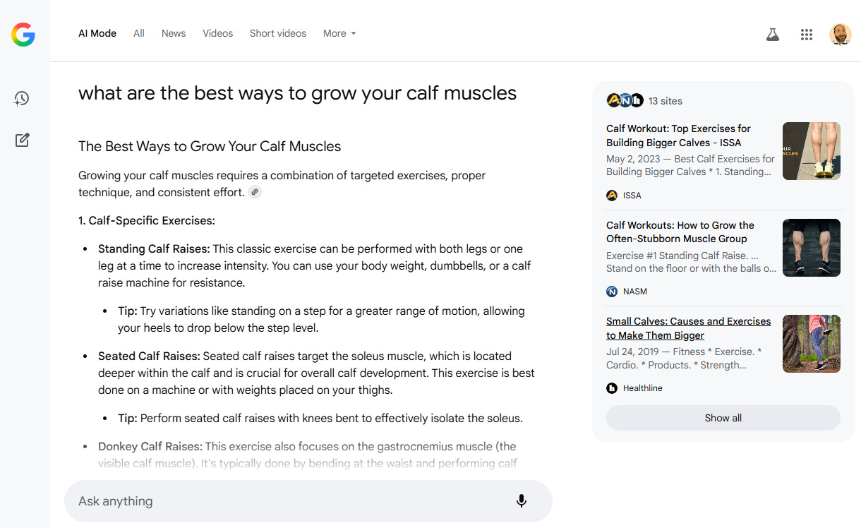 I have to admit that, in many cases, I find myself reluctant to click to a source webpage, even when I want additional information. It’s simpler to ask AI Mode a follow-up question rather than click to a webpage.